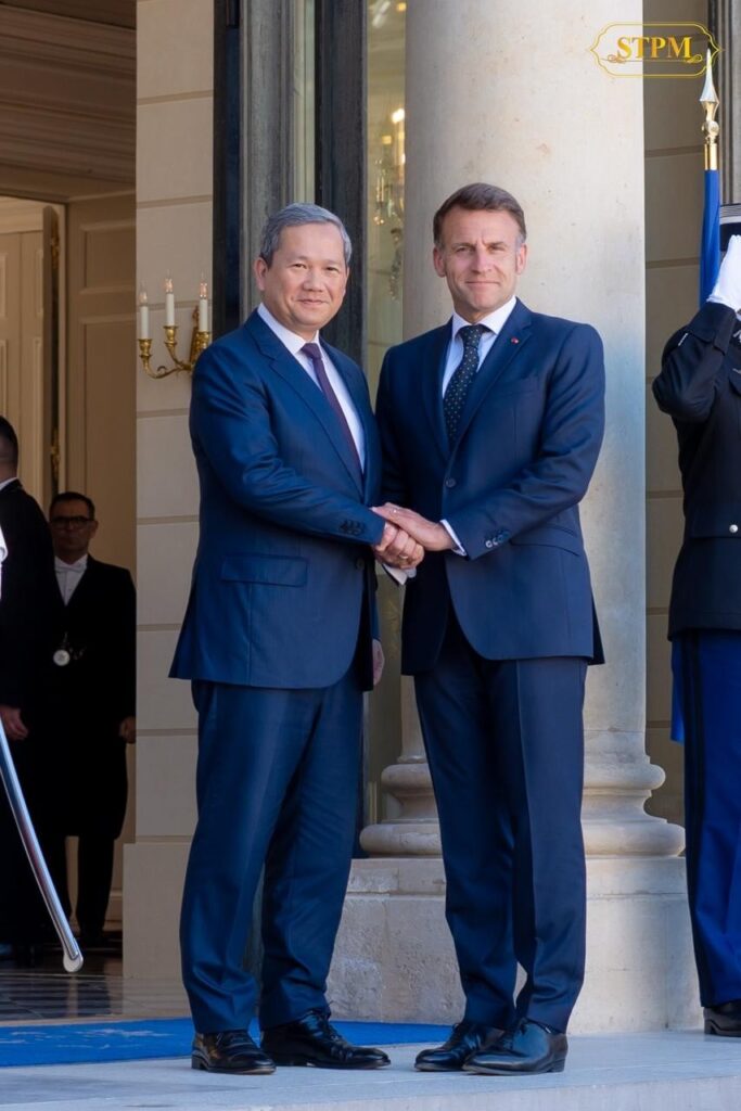 ប្រទេសបារាំង ៖ សម្តេចធិបតី ហ៊ុន ម៉ាណែតនាយករដ្ឋមន្រ្តី បានថ្លែងអរគុណចំពោះឯកឧត្តមប្រធានាធិបតី Emmanuel Macron ចំពោះការស្វាគមន៍យ៉ាងកក់ក្តៅ និងកិច្ចពិភាក្សាការងារប្រកបដោយលទ្ធផលវិជ្ជមានដើម្បីពង្រឹងចំណងមិត្តភាពទ្វេរភាគីរវាងប្រទេសយើងទាំងពីរ ជាពិសេសការរៀបចំតម្លើងកម្រិតនៃទំនាក់ទំនងរវាងកម្ពុជានិងបារាំងដល់កម្រិត “ភាពជាដៃគូរយុទ្ធសាស្ត្រ – Strategic Partnership” នៅពេលឆាប់ៗខាងមុខ។