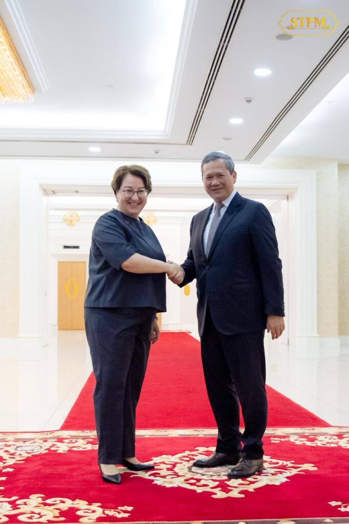 ក្នុងឱកាសនៃជំនួប, លោកជំទាវឯកអគ្គរដ្ឋទូត បានសម្ដែងនូវការអរគុណយ៉ាងជ្រាលជ្រៅចំពោះ សម្ដេចធិបតី ដែលបានចំណាយពេលដ៏មមាញឹកអនុញ្ញាតឱ្យរូបលោកជំទាវ និងសហការី ចូលជួបជម្រាបលា។ លោកជំទាវបានបង្ហាញក្ដីសោមនស្សរីករាយ ដែលបានបំពេញបេសកកម្មការទូតនៅកម្ពុជា និងបានស្វែងយល់ច្រើនអំពី ប្រជាជន វប្បធម៌ និងអរិយធម៌ដ៏សម្បូរបែបរបស់កម្ពុជា។ ទន្ទឹមនឹងនេះ លោកជំទាវបានជម្រាបជូនសម្តេចធិបតី អំពីការសម្រេចបាននូវសមិទ្ធផលនានាក្នុងអាណត្តិការទូតរបស់លោកជំទាវ ដែលបានចូលរួមចំណែកយ៉ាងសំខាន់ក្នុងការរឹតចំណងមិត្តភាព និង ការពង្រឹងកិច្ចសហប្រតិបត្តិការរវាងប្រទេសទាំងពីរឱ្យកាន់តែរីកចម្រើន ជាពិសេសលើវិស័យ សេដ្ឋកិច្ច, ពាណិជ្ជកម្ម, អប់រំ និងវប្បធម៌។ លោកជំទាវក៏បានសង្កត់ធ្ងន់ថា កម្ពុជា និងតួកគីយ៉េ នៅមានវិស័យសក្ដានុពលជាច្រើនទៀតដែលអាចពង្រីកកិច្ចសហប្រតិបត្តិការជាមួយគ្នាឱ្យកាន់តែស៊ីជម្រៅ។