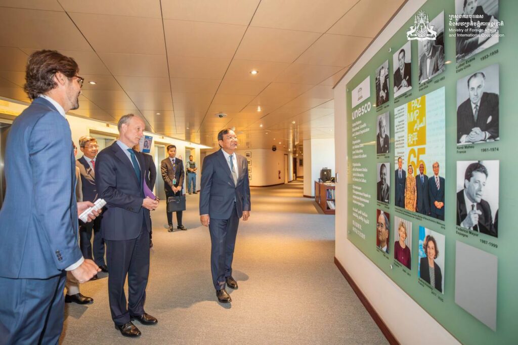 ឯកឧត្តមឧបនាយករដ្ឋមន្ត្រីបានថ្លែងអំណរគុណយ៉ាងជ្រាលជ្រៅចំពោះការបន្តគាំទ្រ និង តួនាទីដ៏សំខាន់របស់អង្គការយូណេស្កូ ក្នុងការគ្រប់គ្រង និងការការពារបេតិកភណ្ឌវប្បធម៌រូបី និងអរូបី របស់កម្ពុជា រួមមានតំបន់បេតិកភណ្ឌពិភពលោកសំខាន់ៗ ដូចជាប្រាសាទអង្គរ និងប្រាសាទព្រះវិហារ ជាដើម។