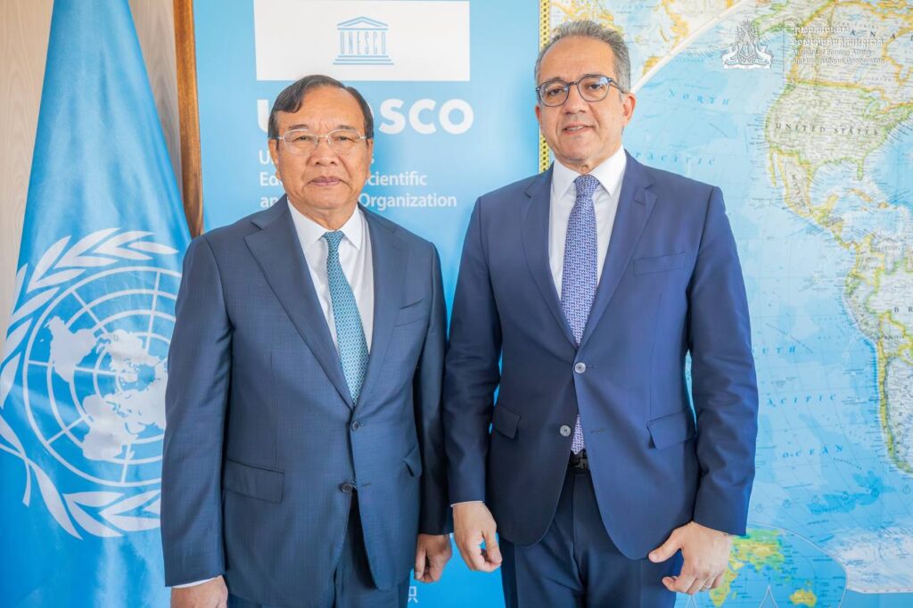 នៅថ្ងៃទី៩ ខែមេសា ឆ្នាំ២០២៦ នៅទីស្នាក់ការអង្គការយូណេស្កូ នាទីក្រុងប៉ារីស ឯកឧត្តម ប្រាក់ សុខុន ឧបនាយករដ្ឋមន្ត្រី រដ្ឋមន្ត្រីក្រសួងការបរទេស និងសហប្រតិបត្តិការអន្តរជាតិន ព្រះរាជាណាចក្រកម្ពុជា បានជួបពិភាក្សាទ្វេភាគីជាមួយឯកឧត្តមបណ្ឌិត Khaled El-Enany អគ្គនាយកអង្គការយូណេស្កូ។