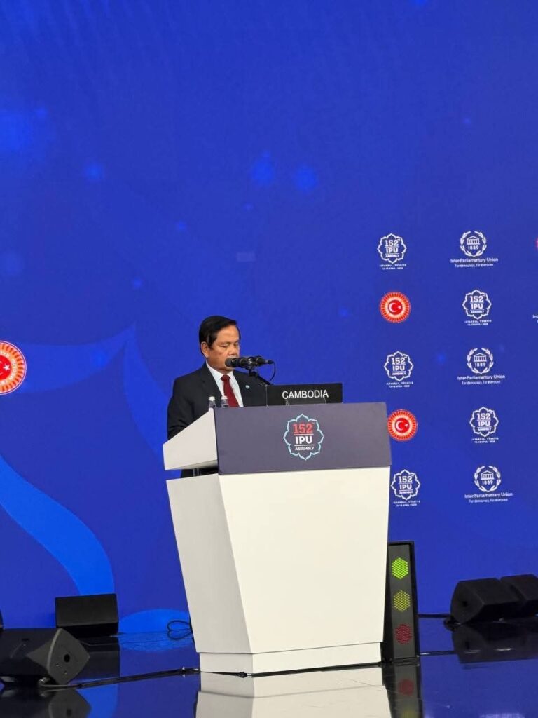 ឯកឧត្តម អ៊ុច បូរិទ្ធ អនុប្រធានទី១ ព្រឹទ្ធសភា នៃព្រះរាជាណាចកកម្ពុជា បានថ្លែងសុន្ទរកថាក្នុងអំឡុងកិច្ចពិភាក្សាទូទៅ នៃមហាសន្និបាតលើកទី ១៥២ របស់សហភាពអន្តរសភា (IPU)ក្រោមមូលបទ«ការពូនជ្រុំក្តីសង្ឃឹម ការថែរក្សាសន្តិភាព និងធានាយុត្តិធម៌សម្រាប់អ្នកជំនាន់ក្រោយ» ទីក្រុងស៊ីស្តង់ប៊ុល ថ្ងៃទី១៧ ខែមេសា ឆ្នាំ២០២៦។