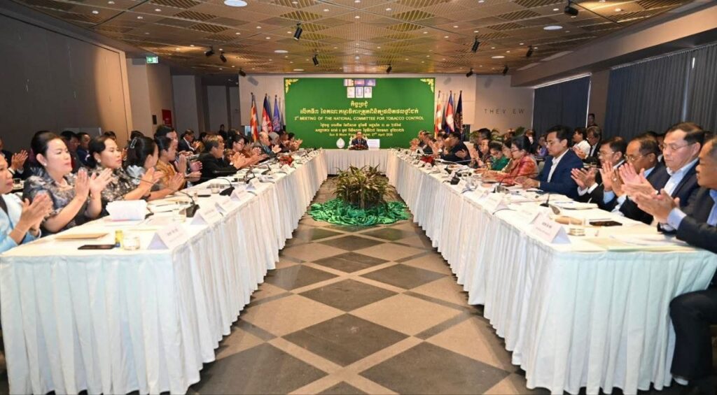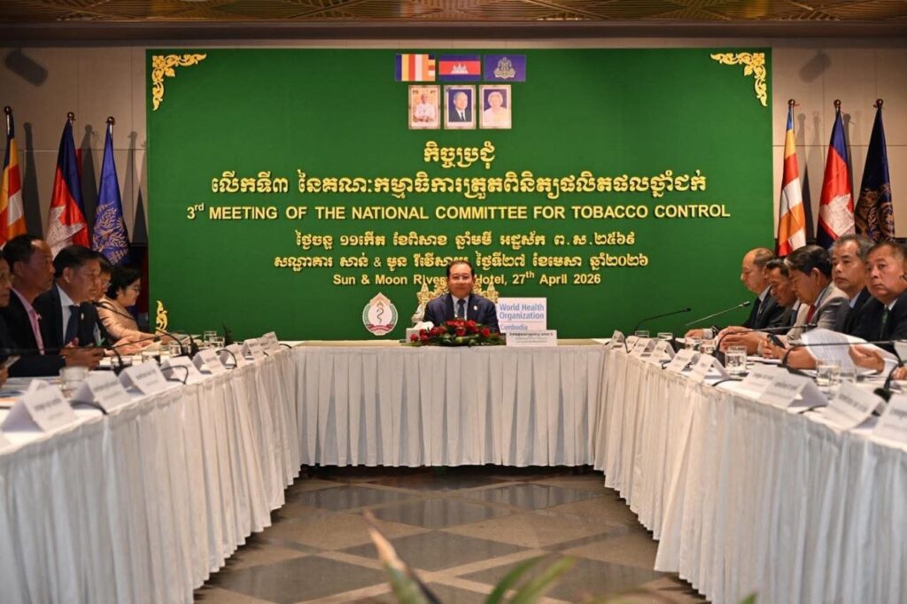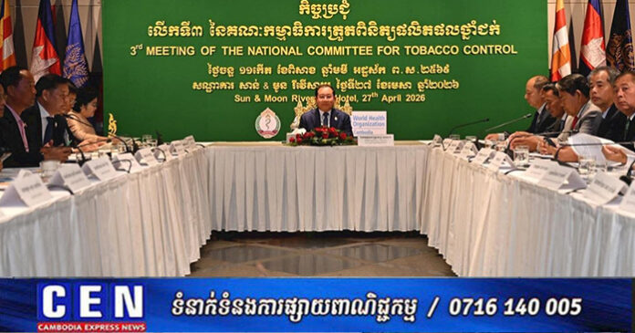 នៅថ្ងៃទី២៧ ខែមេសា ឆ្នាំ២០២៦ ឯកឧត្តមសាស្ត្រាចារ្យ ឈាង រ៉ា រដ្ឋមន្ត្រីក្រសួងសុខាភិបាល បានដឹកនាំកិច្ចប្រជុំ គណៈកម្មាធិការត្រួតពិនិត្យផលិតផលថ្នាំជក់ ដើម្បីពិនិត្យវឌ្ឍនភាពការងារ ពង្រឹងកិច្ចសហការពហុវិស័យ និងកំណត់អាទិភាពសម្រាប់ជំហានបន្ត ក្នុងការកាត់បន្ថយការប្រើប្រាស់ថ្នាំជក់ ការពារប្រជាជនពីផ្សែងថ្នាំជក់ បង្ក្រាបផលិតផលថ្នាំជក់ខុសច្បាប់ និងក្លែងក្លាយ ព្រមទាំងទប់ស្កាត់បារីអេឡិចត្រូនិក ដែលកំពុងបង្កហានិភ័យដល់យុវជន និងសុខភាពសាធារណៈ។