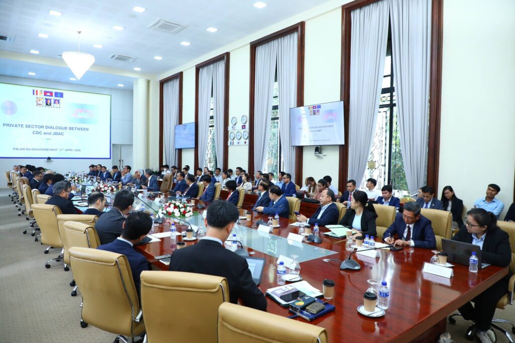 ភ្នំពេញ ៖ ឯកឧត្តម ស៊ុន ចាន់ថុល ឧបនាយករដ្ឋមន្ត្រី អនុប្រធានទី១ក្រុមប្រឹក្សាអភិវឌ្ឍន៍កម្ពុជា រួមជាមួយ លោក Akira Yoshimoto ប្រធានសមាគមធុរកិច្ចជប៉ុនប្រចាំនៅកម្ពុជា (JBAC) បានអញ្ជើញដឹកនាំកិច្ចប្រជុំពិភាក្សាផ្លាស់ប្តូរយោបល់ លើបច្ចុប្បន្នភាពប្រតិបត្តិការរបស់ក្រុមហ៊ុនជប៉ុននៅកម្ពុជា ដោយមានការចូលរួមពីអ្នកតំណាងក្រសួង-ស្ថាប័នពាក់ព័ន្ធ និងតំណាងក្រុមហ៊ុនជប៉ុនដែលមានប្រតិបត្តិការវិនិយោគនៅកម្ពុជាជាច្រើនរូបផងដែរ។ គោលបំណងនៃកិច្ចប្រជុំនេះ គឺដើម្បីស្តាប់នូវមតិយោបល់ថ្មីៗរបស់ផ្នែកឯកជន និងពិនិត្យលើការគាំទ្រផ្សេងៗសំដៅបន្តលើកកម្ពស់ប្រសិទ្ធភាពនៃប្រតិបត្តិការរបស់ក្រុមហ៊ុនដែលបានបណ្តាក់ទុនវិនិយោគនៅក្នុងប្រទេសកម្ពុជា នាក្រុមប្រឹក្សាអភិវឌ្ឍន៍កម្ពុជា នាព្រឹកថ្ងៃចន្ទ ទី២៧ ខែមេសា ឆ្នាំ២០២៦ ។