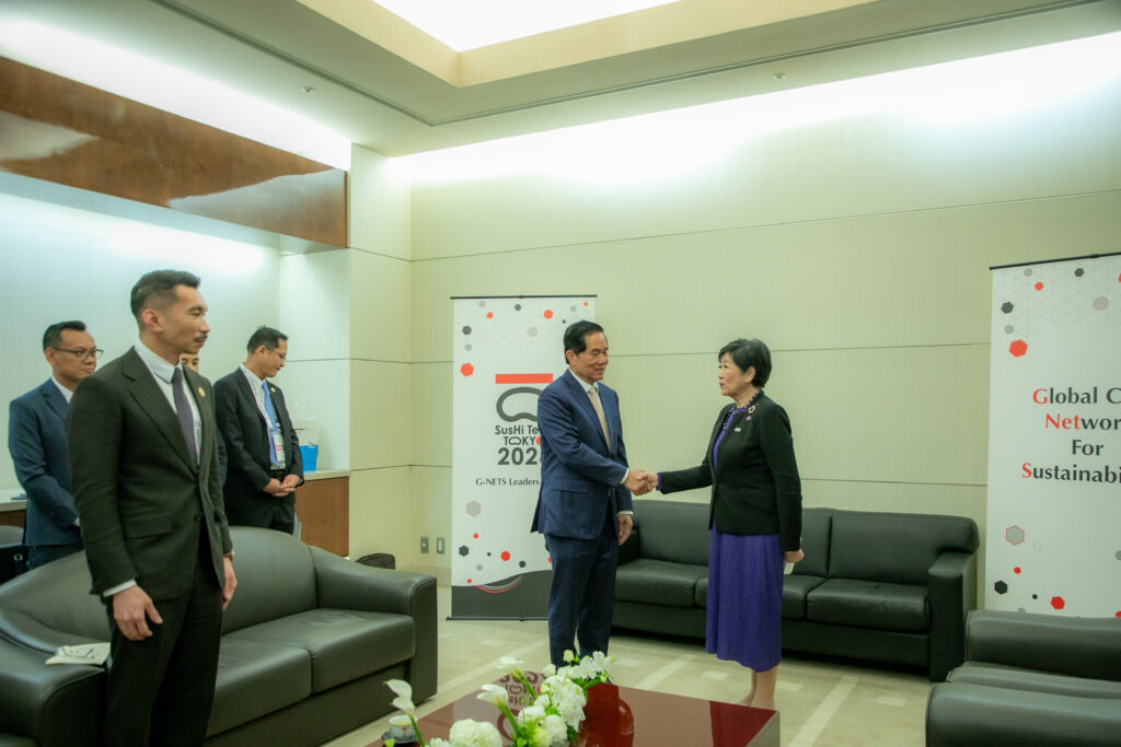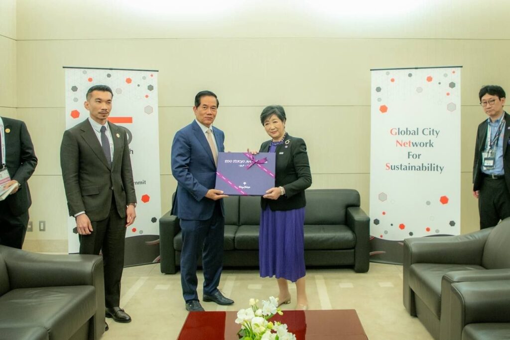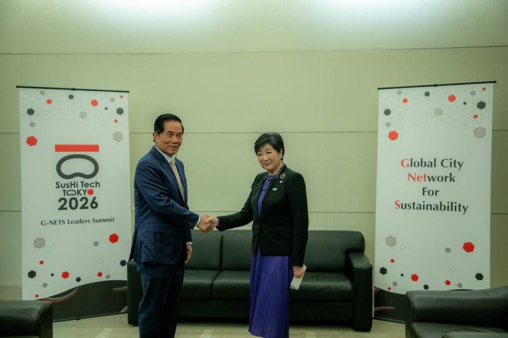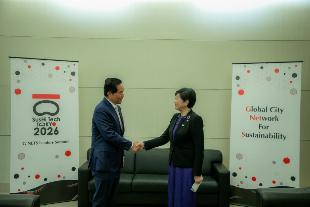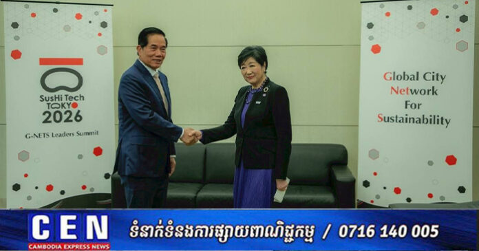 ក្រុងតូក្យូ៖ នារសៀលថ្ងៃទី២៧ ខែមេសា ឆ្នាំ២០២៦ ឯកឧត្តម ឃួង ស្រេង អភិបាលនៃគណៈអភិបាលរាជធានីភ្នំពេញបានអញ្ជើញចូលជួបពិភាក្សាការងារជាមួយលោកជំទាវ យូរីកូ កូអ៊ីកេ អភិបាលក្រុងតូក្យូ ក្នុងឱកាសដែលឯកឧត្តមអញ្ជើញបំពេញទស្សនកិច្ចផ្លូវការ និងចូលរួមកិច្ចប្រជុំកំពូលលើកទី៣ នៃបណ្តាញទីក្រុង សកលសម្រាប់ចីរភាព (3rd G-NETS Leaders Summit) នៅទីក្រុងតូក្យូ ប្រទេសជប៉ុន។