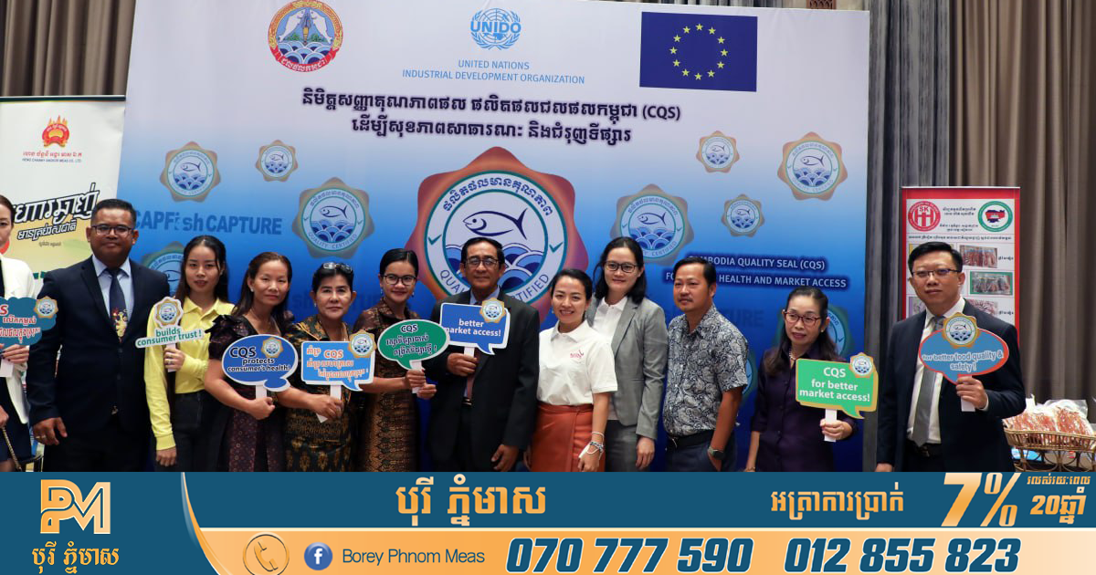 ភ្នំពេញ៖ រដ្ឋបាលជលផលក្រសួងកសិកម្ម រុក្ខាប្រមាញ់ និងនេសាទ បានដាក់ឱ្យដំណើរការជាផ្លូវការ និមិត្តសញ្ញាគុណភាពផល ផលិតផលជលផលកម្ពុជា CQS ដែលនឹងជួយគាំទ្របន្ថែមដល់ឧស្សាហកម្មនេសាទ និងសហគ្រាសកែច្នៃផលជលផល។