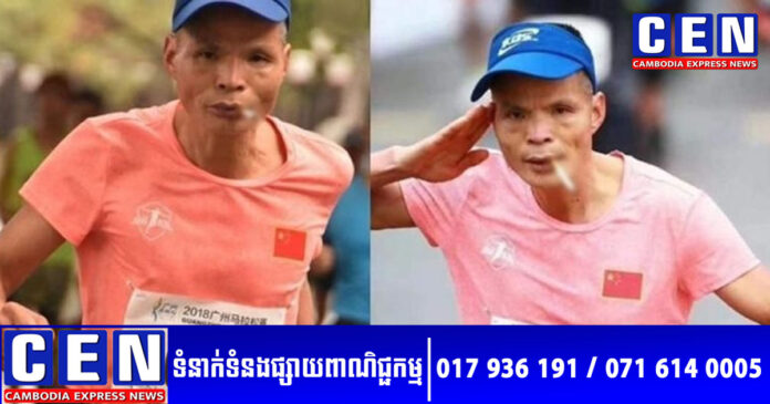 កាលពីពេលថ្មីៗនេះ បុរសជនជាតិចិនម្នាក់ បានធ្វើឲ្យផ្ទុះការចាប់អារម្មណ៍យ៉ាងខ្លាំង នៅលើប្រព័ន្ធផ្សព្វផ្សាយសង្គម បន្ទាប់ពីគាត់ត្រូវបានគេថតបាន ពីសកម្មភាពអុជ និងជក់បារី ជាច្រើនដើម ពេលកំពុងរត់ម៉ារ៉ាតុងចម្ងាយ ៤២ គីឡូម៉ែត្រ នៅស្រុក Xin’anjiang។