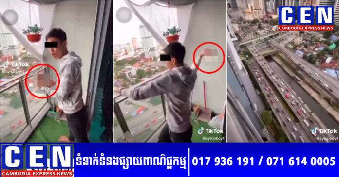 ប្រជាជនម៉ាឡេស៊ី ពិតជាមានការខឹងសម្បារយ៉ាងខ្លាំង ចំពោះទង្វើដ៏បង្កគ្រោះថ្នាក់របស់យុវជនទំនើងម្នាក់ បន្ទាប់ពីបានថតវីដេអូពីយ៉អគារខ្ពស់ ដោយយកដបស្រាធំមួយ បោះគ្រវែងទៅកាន់ផ្លូវខាងក្រោម ដែលចរាចររថយន្តកំពុងកកស្ទះ។