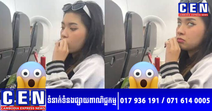 ខណៈនោះ ប្អូនស្រីរបស់នាងបានព្យាយាមពន្យល់ ផ្តល់សញ្ញា តាមរយៈធ្វើភ្នែកក្រឡេកក្រឡាច់ ថាកំពុងមានអ្វីមិនល្អនៅក្បែរនាង។ អ្វីដែលអស់ទាស់ទៀតនោះ វីដេអូក៏បង្ហាញស្រ្តីនោះ បានយកដៃកោសជើងយកហិតធ្វើពុំដឹងទៀតផង។ តាមរយៈឃ្លីប នាងបានបញ្ជាក់ក្នុង Caption ថា៖ «បងប្អូនស្រីឡើងយន្តហោះលើកដំបូង ជួបរឿងឡើងអស់ទាស់តែម្តង»។