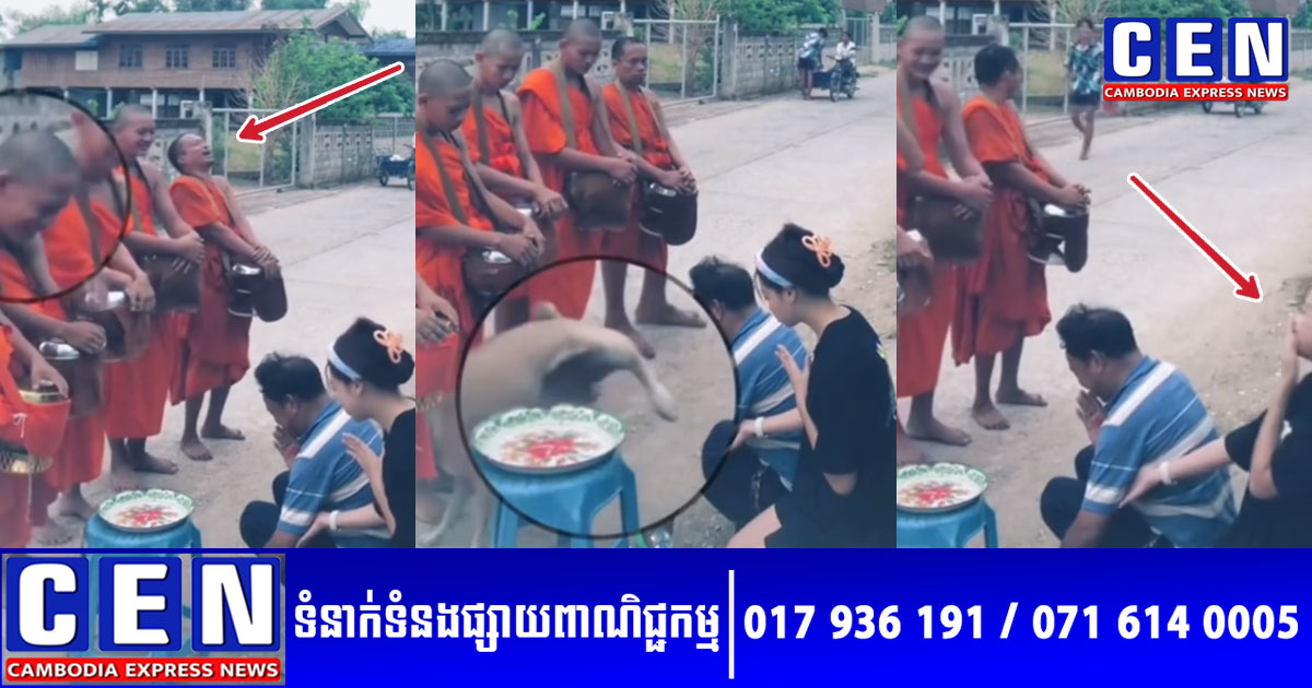 វីដេអូឃ្លីបមួយ បានកំពុងទទួលភាពល្បីល្បាញយ៉ាងខ្លាំង នៅលើអ៊ីនធើរណែត ដោយបានធ្វើឲ្យគ្រប់គ្នាទប់សំណើចមិនជាប់នោះ ពោលគឺសើចហូរទឹកភ្នែកតែម្តង បន្ទាប់ពីបានឃើញទិដ្ឋភាពចៃដន្យ សត្វឆ្កែ១ក្បាល ចូលមកបង្អាក់ធម៌របស់ព្រះសង្ឃ ដែលកំពុងសូត្រឲ្យពរទៅដល់ ឪពុក និងកូនស្រីមួយគូ បន្ទាប់ពីបានដាក់បាត្ររួច។