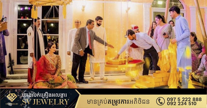 បណ្ដាញសង្គមកំពុងភ្ញាក់ផ្អើលនឹងរូបភាពពិធីមង្គលការដ៏មហាអស្ចារ្យមួយ ដែលរៀបចំឡើងនៅក្នុងអគារ ប៊ើច ខាលីហ្វា ឌូបៃ (Burj Khalifa Dubai) ក្នុងប្រទេសឌូបៃ រយៈពេល ១០ថ្ងៃ ដែលមានទាំងជប់លៀងលើទូកយ៉ាតឆ៍ រាត្រីបូលីវូដ ជប់លៀងក្នុងមហាសណ្ឋាគារទំនើប និងហាយឡាយដែលល្បីល្បាញបំផុតក្នុងពិធីនោះគឺ ការចាប់កូនក្រមុំមកថ្លឹងទម្ងន់ជាមួយមាសសុទ្ធថ្លៃទឹកដោះ ហើយលទ្ធផលចេញមក ធ្វើឱ្យអ្នកលេងបណ្ដាញសង្គមទាំងឡាយភ្ញាក់ផ្អើលយ៉ាងខ្លាំង ព្រោះមាសថ្លៃទឹកដោះ មានទម្ងន់ដល់ទៅជាង ១០០គីឡូក្រាមឯណោះ។