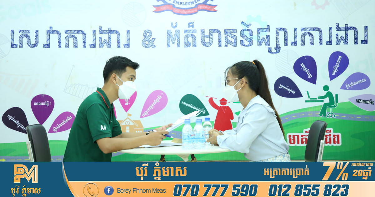 ភ្នំពេញ៖ រាជរដ្ឋាភិបាលកម្ពុជា តាមរយៈទីភ្នាក់ងារជាតិមុខរបរ និងការងារ (NEA) នៃក្រសួងការងារ និងបណ្តុះបណ្តាលវិជ្ជាជីវៈ សហការជាមួយសហភាពសហព័ន្ធយុវជនកម្ពុជា រាជធានីភ្នំពេញ និងគាំទ្រដោយអង្គការអន្តរជាតិខាងការងារ (ILO ) បានរៀបចំពិព័រណ៍ការងារក្រោមប្រធានបទ “ពិព័រណ៍ការងារ និងមគ្គទេសក៍អាជីព” ដោយផ្តល់ឱកាសការងារប្រមាណ ៤៥០០ កន្លែង ពីក្រុមហ៊ុនធំៗជិត ៣០ នៅអគារ Kampus ជិតស្ពានអាកាសក្បាលថ្នល់ រយៈពេលពីរថ្ងៃ គឺថ្ងៃទី១៣-១៤ ខែមិថុនា ឆ្នាំ២០២៣នេះ។