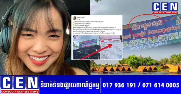 នេះបើតាមគណនីហ្វេសប៊ុកឈ្មោះ Leam Sreyhi ដែលគេស្គាល់ថា ជាស្រីស្អាតថ្ពាល់ខួច លក់លីអូតាមអនឡាញដ៏ល្បី បានបង្ហោះបែបនេះថា៖ «យាយមែនទើបជួបមួយទេ ភោជនីដ្ឋាននៅកៀនស្វាយ ទៅញាំអីអង្គុយនៅកញ្ចុះជាប់ៗគ្នាក្តៅចង់ងាប់ អង្គុយជិតកន្លះម៉ោងបានដាក់កង្ហារអោយយើង ដាក់កង្ហារអោយយើង2គិត20000R ថ្លៃកង្ហារទៀត ហើយបង្កងយកអាធម្មជាតិដាក់បង្គងចិញ្ចឹមពុកសាច់អោយយើងទៀត រកស៊ីថោកទាបកំពូលហើយ ម្ហូបគ្មានជាតិឆ្ងាញ់ស្អីតិច សុំខ្លាច លើកទី1ហើយក៏ជាលើកចុងក្រោយដែរ»។