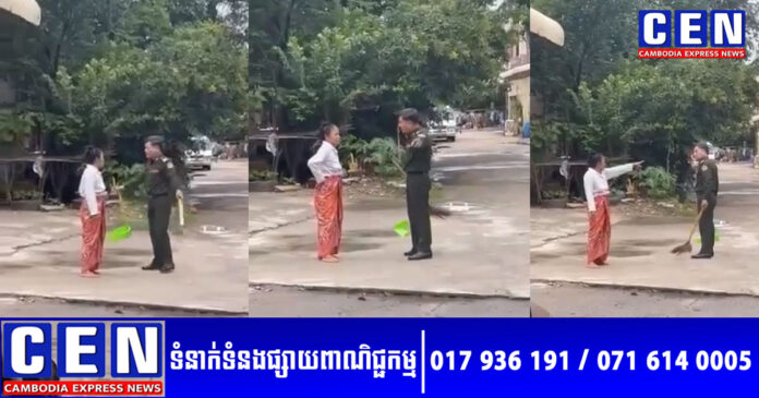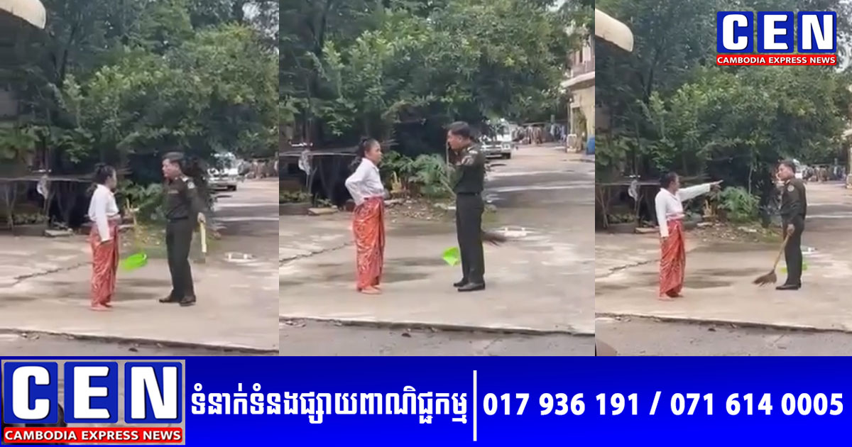 ដោយឡែក ក្រឡេកមកមើលវីដេអូជាក់ស្តែង បានបង្ហាញបុរសជាមន្រ្តីរូបនោះ បានមកឈរឈ្លោះនៅចិញ្ចើមផ្លូវម្ខាង ស្ថិតពីមុខផ្ទះស្រ្តីរូបនោះ ខណៈក្នុងវីដេអូនារីជាកូនស្រីបាននិយាយថា គេបាចនៅមុខផ្ទះគេសោះ ហើយបាចនៅលើផ្លូវសាធារណៈទៀត បែរមករករឿងច្រើនលើកច្រើនសារហើយបងប្អូន!។ នារីជាកូនស្រីដែលបានថតវីដេអូ ក៏បានបង្ហាញឲ្យឃើញថា ផ្ទះរបស់បុរសជាទាហាននោះ ស្ថិតនៅឯកាច់ជ្រុងផ្លូវម្ខាងឯណេះ និងថែមទាំងប្រាប់ឲ្យដឹងថា បុរសរូបនោះគ្មានញាតិជិតខាងរាប់រកទៀតផង។