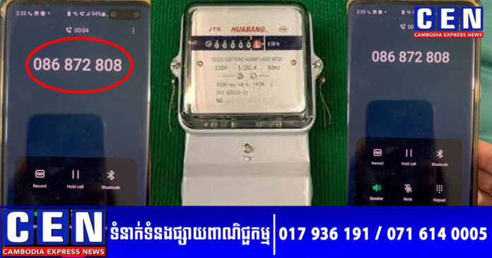 ក្នុងវីដេអូឃ្លីបដែលម្ចាស់ផ្ទះបានថត បានបង្ហាញលេខទូរស័ទ្ទដែលជនឆបោកបានខលមកនោះ គឺ 086 872 808។ ក្នុងនោះ ជនរូបនោះ បានឆបោកប្រាប់ថា «ឌឺហ្សង់ទ័រគីឡូភ្លើង» របស់ម្ចាស់ផ្ទះបានខូចហើយ ហេតុដូច្នេះ ត្រូវតែផ្លាស់ប្តូរដាក់គីឡូភ្លើងថ្មី។ លឺបែបនេះ ម្ចាស់ផ្ទះបានឆ្លើយ «OK» អត់អីទេ អាចចុះមកប្តូរបាន។ តែទន្ទឹមនឹងនេះ ជនឆបោកក៏បានបញ្ជាក់ថា តាមគោលករណ៍ចុះមកប្តូរដុំគីឡូភ្លើងថ្មីឲ្យបាន គឺលុះត្រាតែវេរលុយសេវាចំនួន ១២ ម៉ឺន ៥ពាន់រៀល ឲ្យជាមុនសិន។