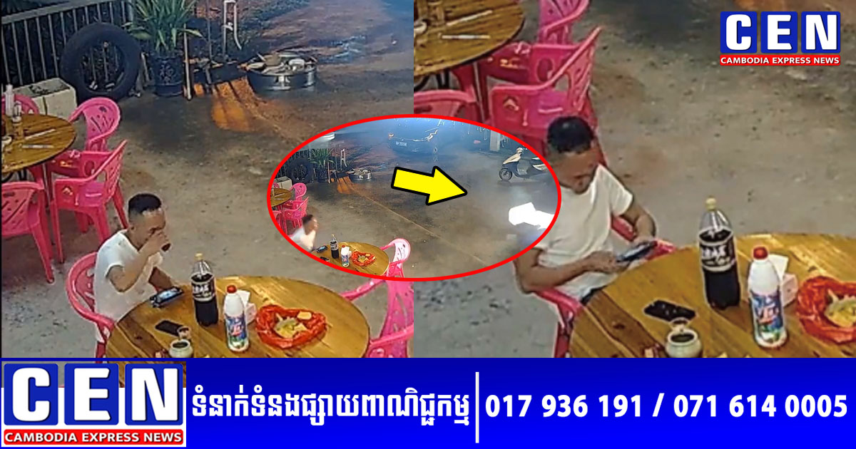 តាមរយៈវីដេអូកាមេរ៉ាសុវត្ថិភាព បានបង្ហាញឲ្យឃើញខណៈបុរសនោះកំពុងមើលទូរស័ព្ទ។ មួយសន្ទុះក្រោយមក ប្រហែលគាត់ធុញ ដូច្នេះគាត់ក៏សម្រេចចិត្តដាក់ទូរសព្ទចុះ ហើយផឹកតែមួយពែង។ ពេលនោះ គាត់បានឃើញពន្លឺមួយចាំងមករកគាត់។ ត្រឹមតែមួយវិនាទី បុរសនោះក៏បានក្រោកឈរភ្លាម ហើយលោតចេញពីទីតាំងអង្គុយ ខណៈរថយន្ត១គ្រឿងបោះពួយសំដៅមកលឿនដូចរន្ទះ។