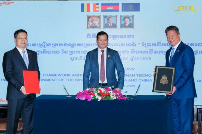 ពិធីចុះហត្ថលេខាអនុញ្ញាតឱ្យក្រុមហ៊ុនចិន សិក្សាលំអិតទៅលើគម្រោងដ៏មានសារៈសំខាន់ខាងលើនេះ ត្រូវបានធ្វើឡើងនៅ រដ្ឋធានីប៉េកាំង ក្រោមអធិបតីភាពរបស់សម្តេចមហាបវរធិបតី ហ៊ុន ម៉ាណែត នាយករដ្ឋមន្ត្រីកម្ពុជា និងត្រូវបានចុះហត្ថលេខារវាងឯកឧត្តមឧបនាយករដ្ឋមន្ត្រី ស៊ុន ចាន់ថុល អនុប្រធានទី១ ក្រុមប្រឹក្សាអភិវឌ្ឍន៍កម្ពុជា ជាមួយតំណាងក្រុមហ៊ុនសាជីវកម្មស្ពាន និងថ្នល់ចិន (CRBC)។