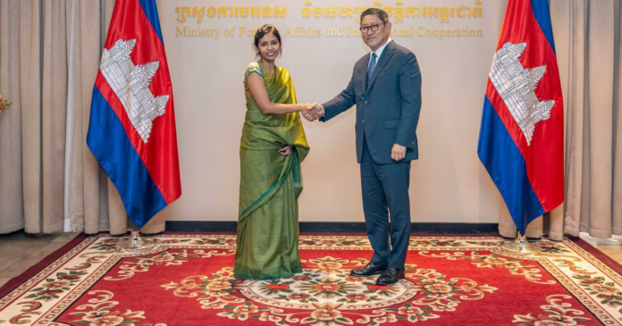ភ្នំពេញ៖ ឯកឧត្តម សុខ ចិន្តាសោភា ឧបនាយករដ្ឋមន្ត្រី និងជារដ្ឋមន្ត្រីការបរទេស និងសហប្រតិបត្តិការអន្តរជាតិ បានជួបពិភាក្សា ជាមួយ លោកស្រីបណ្ឌិត Devyani Uttam Khobragade ឯកអគ្គរដ្ឋទូតឥណ្ឌាប្រចាំកម្ពុជានៅថ្ងៃទី២៦ ខែតុលា ឆ្នាំ២០២៣ ដើម្បីពង្រឹងបន្ថែមទៀតនូវចំណងមិត្តភាព ធ្វើឱ្យកាន់តែស៊ីជម្រៅនូវកិច្ចសហប្រតិបត្តិការលើវិស័យផ្សេងៗ។