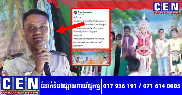 តែបើតាមការបញ្ជាក់ក្នុងវីដេអូពីក្រុមអ្នកល្ខោន គឺពួកគេបានមកសម្តែងនៅក្នុងកម្មពិធីបុណ្យកឋិនទាន នៅវត្តក្នុងភូមិ អូរលុង ឃុំ ស្រែចា ស្រុក ស្នួល ខេត្ត ក្រចេះ អស់រយៈពេល២យប់មកហើយ ប៉ុន្តែ ខណៈកំពុងសម្តែងនៅយប់ទី៣ថ្ងៃបញ្ចប់ ស្រាប់តែលោកមេប៉ុស្តិ៍រូបនេះដែលស្ថិតក្នុងស្ថានភាពស្រវឹងស្រា ចុះមកហាមឃាត់មិនឲ្យសម្តែងទាំងកណ្តាលទីតែម្តង និងសូម្បីរកទាញទូរស័ព្ទសមាជិកក្រុមល្ខោនបោកចោលទៀតផង បន្ទាប់ពីប៉ះពាក្យសម្តីដាក់គ្នា ដោយខាងក្រុមល្ខោនឲ្យទៅសួរច្បាប់អនុញ្ញាត ពីសំណាក់គណៈកម្មការអាចារ្យវត្ត ឬព្រះចៅអធិការវត្តទៅ ព្រោះពួកគេមិនដែលជួបច្បាប់អាជ្ញាធរណារបៀបនេះ ហើយក៏មិនមកលបលួចចូលមកសម្ដែងតាមតែចិត្តឯងនោះទេ ពោលគឺទាល់តែមានការទំនាក់ទំនងជួលច្បាស់លាស់ ទើបអាចមកសម្ដែងបាន។