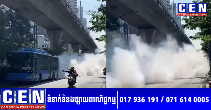 វីដេអូមួយបានធ្វើឲ្យអ្នកលេងបណ្តាញសង្គម ក្នុងប្រទេសថៃ ផ្ទុះការភ្ញាក់ផ្អើលយ៉ាងខ្លាំង ដែលវីដេអូបានបង្ហាញឡានក្រុង ស្រាប់តែបញ្ចេញផ្សេងហុយឡើងទ្រលោមពេញផ្លូវតែម្តង ដែលធ្វើឲ្យអ្នកដំណើរតាមម៉ូតូនាំគ្នាសែ្រកដាក់ទៅកាន់ឡានក្រុងនោះយ៉ាងខ្លាំង ព្រោះតែពួកគេពិបាកក្នុងការធ្វើដំណើរ។
