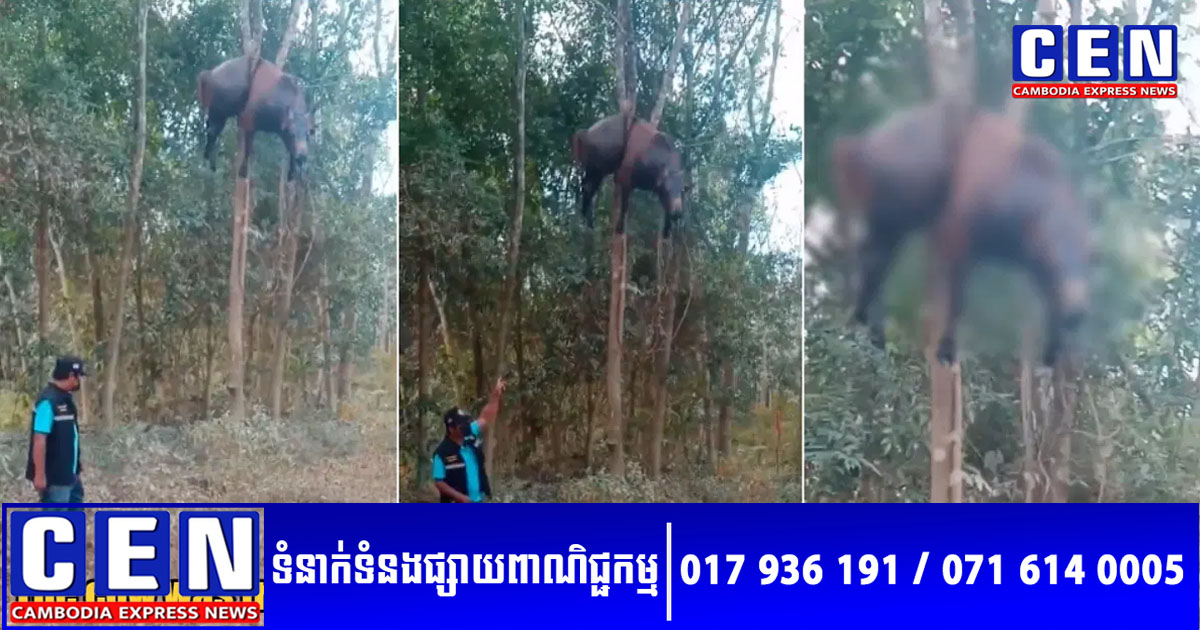 ទំព័រ Twitter មួយ ថ្មីៗនេះ បានចែករំលែកវីដេអូនៃឧប្បត្តិហេតុដ៏ភ្ញាក់ផ្អើល ខណៈដែលសត្វគោមួយក្បាលត្រូវបានគេប្រទះឃើញងាប់ ជាប់នៅក្នុងដើមឈើមួយកន្លែង នៅក្នុងប្រទេសថៃ។