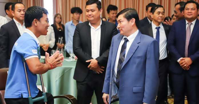(ភ្នំពេញ)៖ ឯកឧត្តម ហេង សួរ រដ្ឋមន្ត្រីក្រសួងការងារ និងបណ្តុះបណ្តាលវិជ្ជាជីវៈ នៅព្រឹកថ្ងៃចន្ទ ទី១១ ខែមីនា ឆ្នាំ២០២៤នេះ បានអំពាវនាវឱ្យដៃគូអន្តរជាតិ ផ្តោតលើការពង្រឹងការបណ្តុះបណ្តាលសមត្ថភាពដល់ជនមានពិការភាពនៅកម្ពុជាដើម្បីផ្តល់ឱកាសការងារឱ្យកាន់តែទូលំទូលាយ និងមានជម្រើសកាន់តែច្រើន។ ការអំពាវនាវបែបនេះ គឺធ្វើឡើងក្នុងពេលដែលឯកឧត្តមរដ្ឋមន្ត្រី បានអញ្ជើញចូលរួមក្នុងវេទិកាជាតិស្ដីពី «បរិយាបន្នពិការភាព និងការងារសមរម្យនៅប្រទេសកម្ពុជា» ដែលមានដៃគូអភិវឌ្ឍអន្តរជាតិនានា បានចូលរួម។