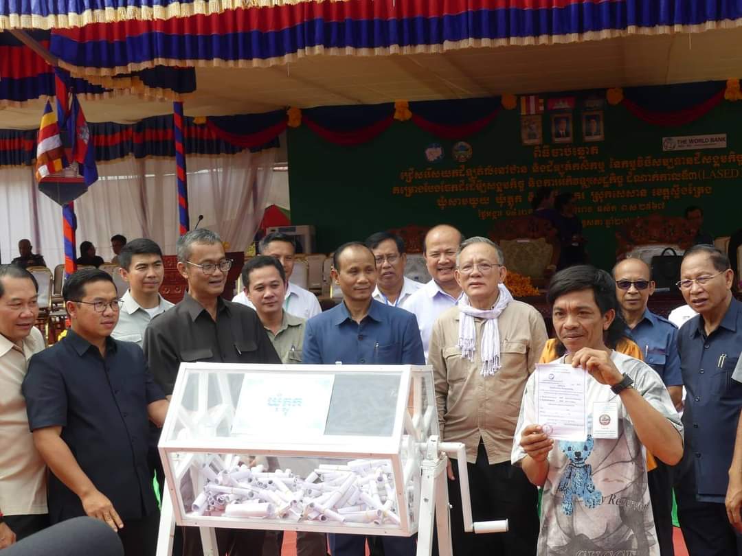 ដោយទទួលបានការអនុញ្ញាតដ៏ខ្ពង់ខ្ពស់ពី ឯកឧត្តម ឌិត ទីណា រដ្ឋមន្រ្តីក្រសួងកសិកម្ម រុក្ខាប្រមាញ់ និងនេសាទ ឯកឧត្តម ហ៊ាន វណ្ណហន រដ្ឋលេខាធិការក្រសួងកសិកម្ម រួមទាំង ឯកឧត្តម ឃី កុសល អនុរដ្ឋលេខាធិការ និងជានាយកគម្រោង LASED III ផ្នែកកសិកម្ម បានចូលរួមជាគណៈអធិបតីក្នុងកម្មវិធីចាប់ឆ្នោតជ្រើសរើសយកដីឡូតិ៍លំនៅឋាន និងដីឡូតិ៍កសិកម្មនៃកម្មវិធីសម្បទានដីសង្គមកិច្ចគម្រោង (LASED III) ជូនដល់សម្បទាននិក នៅឃុំសាមឃួយ ឃុំភ្លុក និងឃុំស្រែគរ ស្រុកសេសាន ក្រោមអធិបតីភាព ឯកឧត្តម សូ ខនឫទ្ធីគុណ រដ្ឋលេខាធិការ តំណាងដ៏ខ្ពង់ខ្ពស់ឯកឧត្តម សាយ សំអាល់ ឧបនាយករដ្ឋមន្ត្រី រដ្ឋមន្ត្រីក្រសួងរៀបចំដែនដី នគរូបនីយកម្ម និងសំណង់។