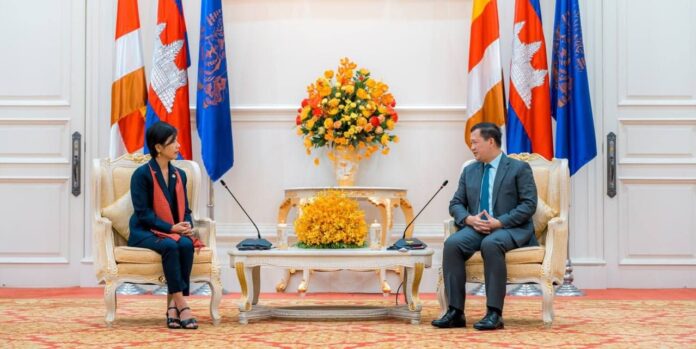 ក្នុងឱកាសនៃជំនួប លោកជំទាវអគ្គរដ្ឋទូត បានថ្លែងអំណរគុណជូនចំពោះ សម្តេចធិបតី ដែលបានឆ្លៀតពេលវេលាដ៏មមាញឹកអនុញ្ញាតឱ្យរូបលោកជំទាវ និងគណៈប្រតិភូ ចូលជួបសម្តែងការគួរសម និងពិភាក្សាការងារ ព្រមទាំងបានបញ្ជាក់អំពីការពេញចិត្តចំពោះទំនាក់ទំនងការទូតជាប្រវត្តិសាស្រ្ត និងកិច្ចសហប្រតិបត្តិការល្អ រវាងកាណាដា-កម្ពុជា ដែលជាទំនាក់ទំនង និងកិច្ចសហប្រតិបត្តិការប្រកបដោយផ្លែផ្កា ហើយក្នុងអាណត្តិការទូតនៅកម្ពុជា លោកជំទាវឯកអគ្គរដ្ឋទូត ប្តេជ្ញាខិតខំបន្ត ពង្រឹង និងពង្រីកទំនាក់ទំនង និង កិច្ចសហប្រតិបត្តិការ រវាងប្រទេសទាំងពីរឱ្យកាន់តែរីកចម្រើន។ បន្ថែមលើនេះ លោកជំទាវឯកអគ្គរដ្ឋទូត ក៏បានគោរពជម្រាបជូនសម្តេចធិបតីអំពីការបន្តជំរុញកិច្ចសហប្រតិបត្តិការលើវិស័យពាណិជ្ជកម្ម និងវិនិយោគរវាងកាណាដា-កម្ពុជា ក៏ដូចជាការពង្រឹងការវិនិយោគប្រកបដោយគុណភាពរបស់ក្រុមហ៊ុនកាណាដានៅកម្ពុជាផងដែរ។