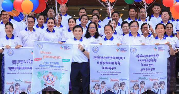 ភ្នំពេញ៖ រដ្ឋមន្ត្រីក្រសួងការងារ និងបណ្ដុះបណ្ដាលវិជ្ជាជីវៈ និងជាប្រធានគណ:កម្មាធិការជាតិប្រឆាំងពលកម្មកុមារ ឯកឧត្តម ហេង សួរ នាព្រឹកថ្ងៃទី៤ ខែមិថុនា ឆ្នាំ២០២៤ បានអញ្ជើញជាអធិបតីក្នុងពិធីអបអរសាទរខួបលើកទី៧៥ទិវាកុមារអន្តរជាតិ១មិថុនា ខួបលើកទី២៣ ទិវាពិភពលោកប្រឆាំងពលកម្មកុមារ ១២មិថុនា និងទិវាកុមារកម្ពុជា ឆ្នាំ២០២៤ ដែលរៀបចំឡើងនៅទីស្តីការក្រសួងការងារ និងបណ្តុះបណ្តាលវិជ្ជាជីវៈដោយមានសមាសភាពអញ្ជើញចូលរួម ពីក្រសួង ស្ថាប័នពាក់ព័ន្ធ អង្គការជាតិ អន្តរជាតិ តំណាងអង្គការសហជីព តំណាងអង្គការនិយោជក អាណាព្យាបាល និងកុមារា កុមារី។
