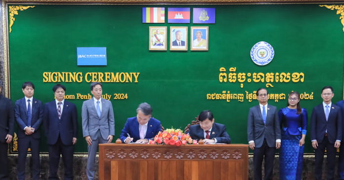 ភ្នំពេញ៖ ឯកឧត្តម ហេង សួរ រដ្ឋមន្ត្រីក្រសួងការងារ និងបណ្តុះបណ្តាលវិជ្ជាជីវៈ នៅរសៀលថ្ងៃទី៩ ខែកក្កដា ឆ្នាំ២០២៤នេះ បានចុះអនុស្សរណៈយោគយល់គ្នាជាមួយលោក FUKUHARA KOJI ប្រធានសមាគមពាណិជ្ជកម្មកម្ពុជា-ជប៉ុន(JBAC) ដើម្បីជំរុញកិច្ចសហប្រតិបត្តិការលើការចុះកម្មសិក្សាក្នុងគោលបំណងគាំទ្រលើការបណ្តុះបណ្តាលជំនាញបច្ចេកទេស និងវិជ្ជាជីវៈ។