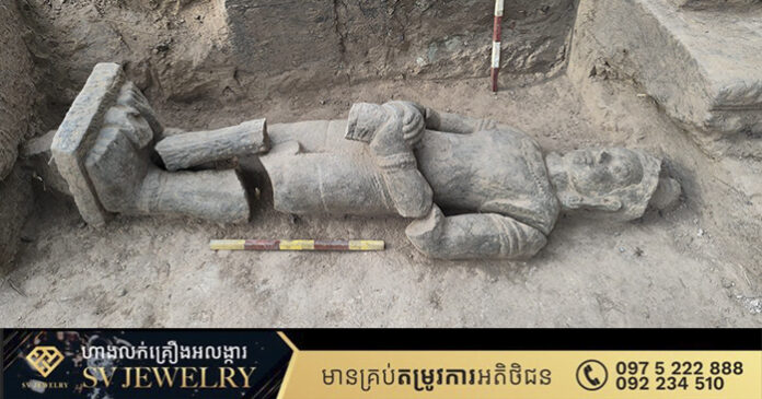 បុរាណវិទូ លោក ជា សារិទ្ធ បានឱ្យដឹងថា បដិមាទ្វារបាល ដែលប្រទះឃើញនេះ គឺស្ថិតនៅខាងស្តាំដៃរបស់ផ្លូវចូលទិសខាងកើតខ្លោងទ្វារទី២ នៃប្រាសាទបន្ទាយប្រី កប់ក្រោមគំនរថ្ម និងកំណកដីប្រមាណជា៨តឹក។