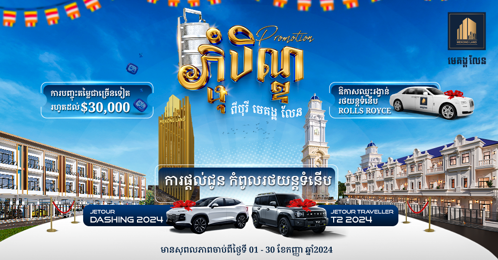 សម្រាប់ព័ត៌មានលំអិតបន្ថែម៖ 061 955 999, Telegram: t.me/mekongland, ឆាតសួរព័ត៌មាន: t.me/MekongLand_Hotlin