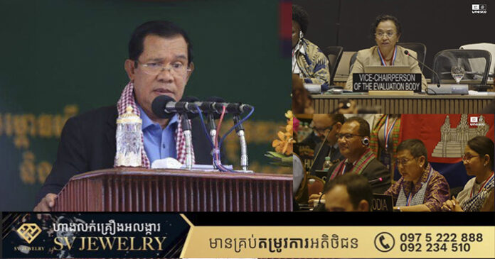 សម្តេចតេជោ បានបញ្ជាក់ថា ក្នុងឱកាសដ៏មហាប្រសើរនេះ ទូលព្រះបង្គំជាខ្ញុំ សូមព្រះបរមរាជានុញ្ញាតសម្តែងនូវអំណរព្រះគុណ ដ៏ជ្រាលជ្រៅវិសេសវិសាលថ្វាយ សម្តេចព្រះមហាក្សត្រី នរោត្តម មុនិនាថ សីហនុ ព្រះវររាជមាតាជាតិខ្មែរ និង ព្រះករុណា ព្រះបាទសម្តេចព្រះបរមនាថ នរោត្ដម សីហមុនី ព្រះមហាក្សត្រ នៃព្រះរាជាណាចក្រកម្ពុជា ដែលព្រះអង្គទ្រង់តែងប្រោសព្រះរាជទាននូវការគាំទ្រជានិច្ចកាល ចំពោះកិច្ចខិតខំប្រឹងប្រែង របស់រាជរដ្ឋាភិបាល ក្នុងវិស័យបេតិកភណ្ឌវប្បធម៌ជាតិ ជាពិសេសបេតិកភណ្ឌវប្បធម៌អរូបីដែលងាយប្រឈមនឹងការបាត់បង់។