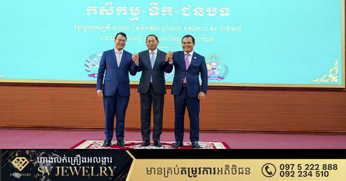 រាជធានីភ្នំពេញ៖ នារសៀលថ្ងៃព្រហស្បតិ៍ ទី១៩ ខែធ្នូ ឆ្នាំ២០២៤ នៅទីស្ដីការក្រសួងអភិវឌ្ឍន៍ជនបទ ឯកឧត្តម ឆាយ ឫទ្ធិសែន រដ្ឋមន្ដ្រីក្រសួងអភិវឌ្ឍន៍ជនបទ និងជាសហប្រធានក្រុមការងារអន្តរក្រសួងត្រី-វិស័យ កសិកម្ម-ទឹក-ជនបទ បានទទួលរៀបចំកិច្ចប្រជុំលើកទី៣ ស្ដីពី ការសម្របសម្រួលការអនុវត្តកម្មវិធីគោលនយោបាយ និងសកម្មភាពដែលពាក់ព័ន្ធ នឹងសហគមន៍កសិកម្មទំនើប សហគមន៍កសិករប្រើប្រាស់ទឹក និងភូមិគំរូ ដោយមានវត្តមានអញ្ជើញចូលរួមពីសំណាក់ ឯកឧត្តម ឌិត ទីណា រដ្ឋមន្ត្រីក្រសួងកសិកម្ម រុក្ខាប្រមាញ់ និងនេសាទ និងឯកឧត្តម ថោ ជេដ្ឋា រដ្ឋមន្ត្រីក្រសួងធនធានទឹក និងឧតុនិយម ព្រមទាំងប្រតិភូនៃក្រុមការងារអន្ដរក្រសួង និងមន្ដ្រីជំនាញនៃក្រសួងទាំង ៣ផងដែរ។