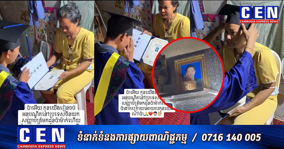 ជាក់ស្តែង តាមរយៈវីដេអូដែលត្រូវបានបង្ហោះ បានភ្ជាប់នូវពាក្យពេចន៍ស្រ្តីជាម្តាយ ដោយបានពោលពាក្យដ៏រំភើបរំជួលចិត្ត ទៅកាន់រូបថតស្វាមីដែលបានចែកឋាន យ៉ាងដូច្នេះថា «ប៉ាអើយ កូនយើងរៀនចប់អនុបណ្ឌិតនៅប្រទេសចិន កូនយកសញ្ញាប័ត្រ មកជូនប៉ាម៉ាក់ហើយ សូមប៉ាងាកក្រោយ អោយពរកូនយើងណា៎ប៉ា»។