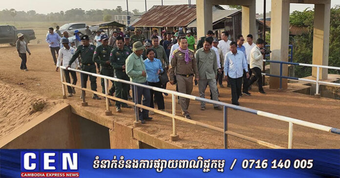 កំពង់ធំ ៖ ឯកឧត្ដម នួន ផារ័ត្ន អភិបាលនៃគណ:អភិបាលខេត្តកំពង់ធំ បានដឹកនាំក្រុមការងារជំនាញចុះពិនិត្យ និងស្វែងរកដំណោះស្រាយជូនប្រជាកសិករ ដែលកំពុងខ្វះខាតទឹក ក្នុងការបង្ករ បង្កើនផលស្រូវ នៅភូមិមួយចំនួន ក្នុងភូមិសាស្ត្រស្រុក ៣ រួមមាន៖ ស្រុកកំពង់ស្វាយ, ស្រុកស្ទោង និងស្រុកប្រាសាទបល្ល័ង្គនារសៀលថ្ងៃទី២៣ ខែមករា ឆ្នាំ២០២៥នេះ ។