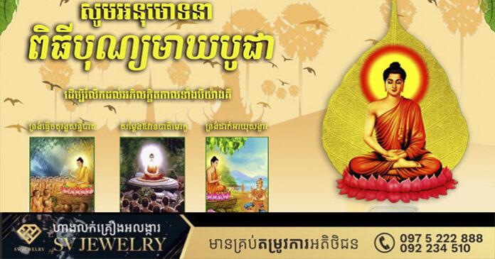 សូមពុទ្ធសាសនិកទាំងឡាយ អញ្ជើញចូលរួមក្នុងពិធីបុណ្យ មាឃបូជា នេះ ដោយសទ្ធាជ្រះថ្លាររៀងៗខ្លួន៕ រក្សាសិទ្ធដោយ៖សុទ្ធលី