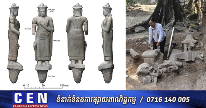 សៀមរាប ៖ អាជ្ញាធរជាតិអប្សរា តាមរយៈការសហការជាមួយស្ថាប័នស្រាវជ្រាវបុរាណវិទ្យាឥណ្ឌា (ASI) ធ្វើកំណាយស្រាវជ្រាវក្នុងដំណាក់កាលទី២ នៅចំណុចខាងក្រៅកំពែងថ្មបាយក្រៀមនាទិសឦសាននៃរោងទងទី៣របស់ប្រាសាទតាព្រហ្ម បានរកឃើញដងខ្លួនពុទ្ធបដិមាចំនួន១ ដែលព្រះសិរត្រូវបានរកឃើញនៅប្រាសាទតាព្រហ្ម ក្នុងឆ្នាំ១៩២៧ និងរក្សាទុកនៅអភិរក្សដ្ឋានអង្គរ រហូតមកបច្ចុប្បន្ន។