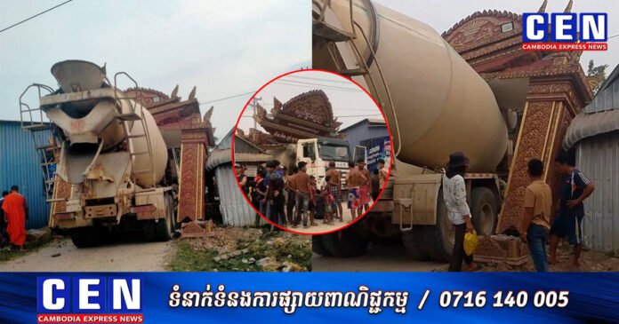តែយ៉ាងណា ក្រោយមក ទើបដឹងថា ឡានក្រឡុកស៊ីម៉ង់តិ៍នេះ បានបើកបុកម៉ូតូយុវជនម្នាក់ បណ្តាលឲ្យដួលម៉ូតូរងរបួស ហើយក៏បានបើករត់គេចខ្លួនមិនទទួលខុសត្រូវនោះទេ។ ប៉ុន្តែ ដោយសារប្រហែលភ័យស្លន់ខ្លាំង ក៏បង្ខំបើកបំបុកខ្លោងទ្វារវត្តតែម្តង។ តែសំណាងអាក្រក់ ត្រូវខ្លោងទ្វារវត្តសង្កត់លើរថយន្តជាប់ទៅមុខលែងរួច ជាហេតុធ្វើឲ្យអ្នកបើកបររត់គេចខ្លួន បន្សល់ទុកឡានក្រឡុកស៊ីម៉ង់តិ៍នៅកន្លែងកើតហេតុបែបនេះ៕
