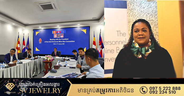 ភ្នំពេញ ៖ ថ្ងៃទី១២ខែមករាឆ្នាំ២០២៦នេះ ឯកឧត្តមបណ្ឌិត លី ធុជ ទេសរដ្ឋមន្ត្រី និងជាអនុប្រធានទី១ អាជ្ញាធរមីន បានជួបប្រជុំតាមអនឡាញជាមួយ លោកជំទាវ Eunice M. Tembo Luambia ឯកអគ្គរដ្ឋទូត និងជាតំណាងអចិន្ត្រៃយ៍នៃប្រទេសហ្សំប៊ីប្រចាំអង្គការសហប្រជាជាតិនៅទីក្រុងហ្សឺណែវ និងជាប្រធានកិច្ចប្រជុំលើកទី ២៣ នៃរដ្ឋភាគីនៃអនុសញ្ញាហាមប្រាមការប្រេីប្រាស់មីនប្រឆាំងមនុស្ស (អនុសញ្ញាអូតាវ៉ា) រួមជាមួយអង្គភាពគាំទ្រការអនុវត្តអនុសញ្ញា (ISU)។