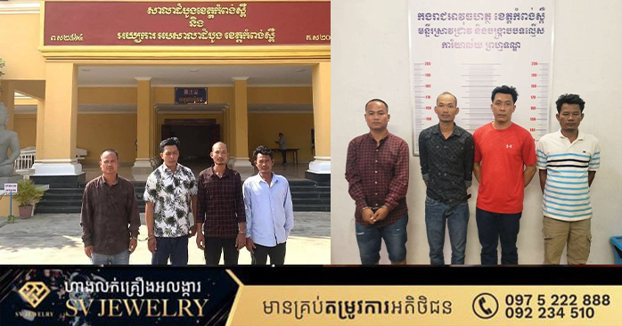 បច្ចុប្បន្ន ជនសង្ស័យទាំង 4នាក់ខាងលើ រួមទាំងវត្ថុតាងខាងលើត្រូវបានកម្លាំងជំនាញ កងរាជអាវុធហត្ថខេត្តកំពង់ស្ពឺ កសាងសុំណុំរឿង បញ្ជូនទៅសាលាដំបូងខេត្ត ចាត់ការបន្តតាមនីតិវិធីច្បាប់៕ រក្សាសិទ្ធដោយ៖សុទ្ធលី