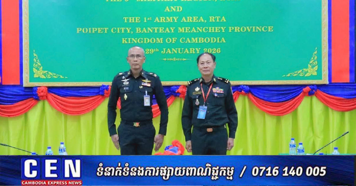 ខេត្តបន្ទាយមានជ័យ, ព្រះរាជាណាចក្រកម្ពុជា ៖ លោកជំទាវ ឧត្តមសេនីយ៍ឯក ម៉ាលី សុជាតា អ្នកនាំពាក្យក្រសួងការពារជាតិ នៃព្រះរាជាណាចក្រកម្ពុជានៅថ្ងៃទី២៩ ខែមករា ឆ្នាំ២០២៦បានចេញសេចក្តីប្រកាសព័ត៌មានឲ្យដឹងថា ក្រសួងការពារជាតិ នៃព្រះរាជាណាចក្រកម្ពុជា សូមជម្រាបជូនសាធារណជន អ្នកសារព័ត៌មានជាតិ និងអន្តរជាតិឱ្យបានជ្រាបថា៖ នៅថ្ងៃទី២៩ ខែមករា ឆ្នាំ២០២៦ វេលាម៉ោង ៩:០០នាទីព្រឹកនេះ កិច្ចប្រជុំក្រុមលេខាធិការដ្ឋាននៃគណៈកម្មាធិការព្រំដែនថ្នាក់យោធភូមិភាគកម្ពុជា-ថៃ (RBC) រវាងយោធភូមិភាគទី៥ ភាគីកម្ពុជា និងកងទ័ពភូមិភាគទី១ ភាគីថៃ បានបញ្ចប់កិច្ចប្រជុំពិភាក្សារបស់ខ្លួនហើយ បន្ទាប់ពីដំណើរការអស់រយៈពេលបីថ្ងៃគឺ ចាប់ពីថ្ងៃទី២៧ ដល់ថ្ងៃទី២៩ ខែមករា ឆ្នាំ២០២៦ ដែលបានប្រព្រឹត្តទៅនៅច្រកអន្តរជាតិប៉ោយប៉ែត ខេត្តបន្ទាយមានជ័យ ព្រះរាជាណាចក្រកម្ពុជា ទល់នឹងខេត្តស្រះកែវ ព្រះរាជាណាចក្រថៃ។ គណៈប្រតិភូក្រុមលេខាធិការរបស់កម្ពុជាដឹកនាំដោយ ឧត្តមសេនីយ៍ទោ សរ គឹមប៉ាក់ ប្រធានក្រុមលេខាធិការ (RBC) កម្ពុជា និងគណៈប្រតិភូក្រុមលេខាធិការរបស់ថៃដឹកនាំដោយ ឧត្តមសេនីយ៍ទោ ភិថាយ៉ាគូល ពោធិ៍សុវណ្ណ ប្រធានក្រុមលេខាធិការ (RBC ) ថៃ។