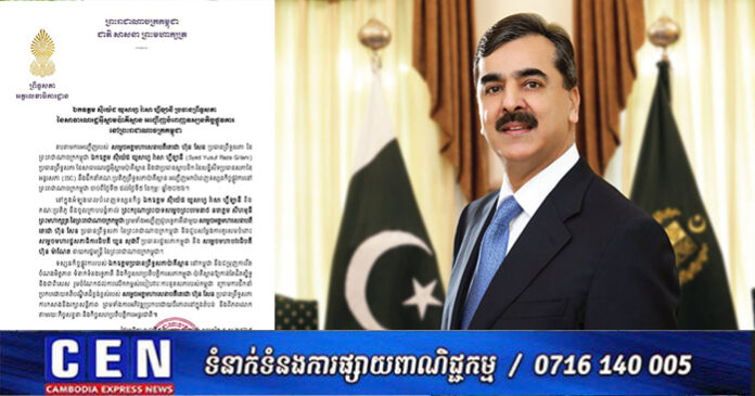 ភ្នំពេញ ៖ ឯកឧត្តម ស៊ីយ៉េដ យូសាហ្វ រ៉ាសា ហ្គីឡានី (Syed Yusuf Raza Gillani) ប្រធានព្រឹទ្ធសភា នៃសាធារណរដ្ឋអ៊ីស្លាមប៉ាគីស្ថាន និងជាប្រធានស្ថាបនិក នៃសន្និសីទប្រធានសភានៃ អន្តរសភា (ISC) នឹងដឹកនាំគណៈប្រតិភូព្រឹទ្ធសភាប៉ាគីស្ថាន អញ្ជើញមកបំពេញទស្សនកិច្ចផ្លូវការនៅ ព្រះរាជាណាចក្រកម្ពុជា ចាប់ពីថ្ងៃទី២ ដល់ថ្ងៃទី៥ ខែកុម្ភៈ ឆ្នាំ២០២៦។
