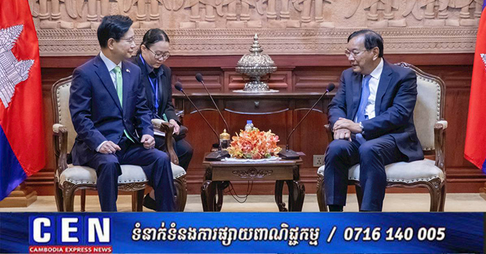 ភ្នំពេញ ៖ នៅព្រឹកថ្ងៃទី០២ ខែកុម្ភៈ ឆ្នាំ២០២៦ នៅទីស្តីការក្រសួង ឯកឧត្តមឧបនាយករដ្ឋមន្ត្រី ប្រាក់ សុខុន រដ្ឋមន្ត្រីការបរទេស និងសហប្រតិបត្តិការអន្តរជាតិ បានអនុញ្ញាតឱ្យឯកឧត្តម គីម ឆាងយ៉ុង (KIM Changyong) ឯកអគ្គរដ្ឋទូតវិសាមញ្ញ និងពេញសមត្ថភាពនៃសាធារណរដ្ឋកូរ៉េ (សា.កូរ៉េ) ប្រចាំព្រះរាជាណាចក្រកម្ពុជា ចូលជួបសម្តែងការគួរសម។