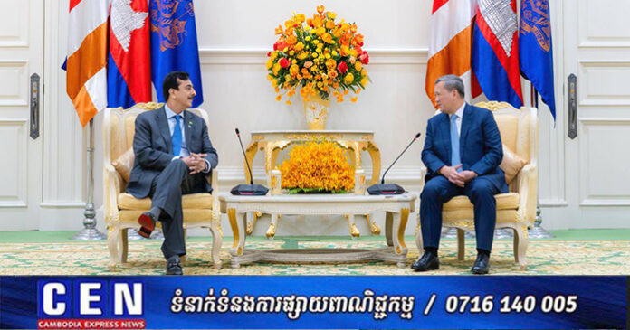 ភ្នំពេញ ៖ នារសៀលថ្ងៃទី០៣ ខែកុម្ភៈ ឆ្នាំ២០២៦, សម្តេចមហាបវរធិបតី ហ៊ុន ម៉ាណែត នាយករដ្ឋមន្រ្តី នៃព្រះរាជាណាចក្រកម្ពុជា បានទទួលជួបពិភាក្សាការងារជាមួយ ឯកឧត្តម ស៊ីយ៉េដ យូសាហ្វ រ៉ាហ្សា ជីឡានី (H.E. Syed Yousaf Raza Gilani) ប្រធានព្រឹទ្ធសភា នៃសាធារណរដ្ឋឥស្លាមប៉ាគីស្ថាន នៅវិមានសន្តិភាព ក្នុងឱកាសដែលឯកឧត្តមដឹកនាំគណៈប្រតិភូ អញ្ជើញបំពេញទស្សនកិច្ចផ្លូវការ នៅព្រះរាជាណាចក្រកម្ពុជា ពីថ្ងៃទី២ ដល់ថ្ងៃទី៥ ខែកុម្ភៈ ឆ្នាំ២០២៦ ។