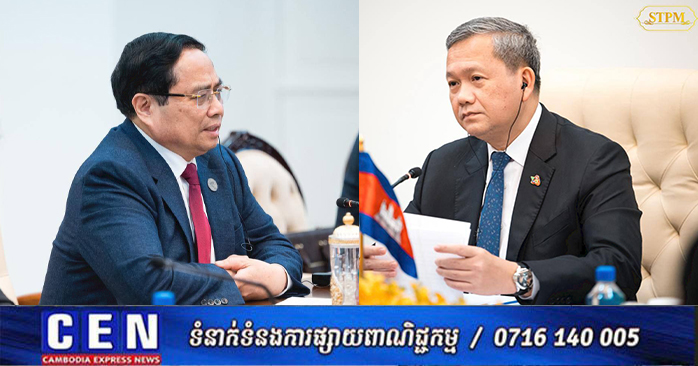 នារសៀលថ្ងៃទី០៦ ខែកុម្ភៈ ឆ្នាំ២០២៦, សម្តេចមហាបវរធិបតី ហ៊ុន ម៉ាណែត នាយករដ្ឋមន្រ្តី នៃព្រះរាជាណាចក្រកម្ពុជា បានទទួលជួបពិភាក្សាការងារជាមួយ ឯកឧត្តម ផាម មិញជិញ (PHAM Minh Chinh) នាយករដ្ឋមន្ត្រី នៃសាធារណរដ្ឋសង្គមនិយមវៀតណាម នៅវិមាន៧មករា ក្នុងឱកាសដែលឯកឧត្តមនាយករដ្ឋមន្ត្រីវៀតណាម បានអញ្ជើញចូលរួមកិច្ចប្រជុំរវាងថ្នាក់ដឹកនាំគណបក្សប្រជាជនកម្ពុជា, ថ្នាក់ដឹកនាំគណបក្សកុម្មុយនីស្តវៀតណាម និងថ្នាក់ដឹកនាំគណបក្សប្រជាជនបដិវត្តន៍ឡាវ នៅរាជធានីភ្នំពេញ ព្រះរាជាណាចក្រកម្ពុជា ពីថ្ងៃទី៦ដល់ថ្ងៃទី៧ ខែកុម្ភៈ ឆ្នាំ២០២៦។