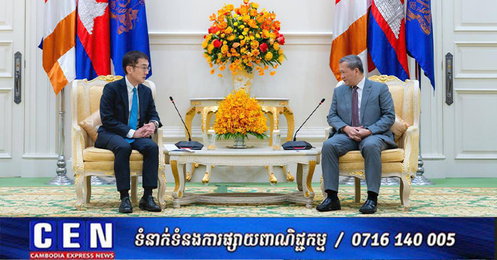 ភ្នំពេញ ៖ សម្តេចមហាបវរធិបតី ហ៊ុន ម៉ាណែត នាយករដ្ឋមន្ត្រីនៃកម្ពុជា អនុញ្ញាតឱ្យ លោក Tetsuya Watanabe ប្រធានវិទ្យាស្ថានស្រាវជ្រាវសេដ្ឋកិច្ចអាស៊ាន និងអាស៊ីបូព៌ា (Economic Research Institute for ASEAN and East Asia-ERIA) ចូលជួបសម្តែងការគួរសម និងពិភាក្សាការងារ នៅវិមានសន្តិភាព នៅព្រឹកថ្ងៃចន្ទ ទី៩ កុម្ភៈ ២០២៦៕ រក្សាសិទ្ធដោយ៖សុទ្ធលី