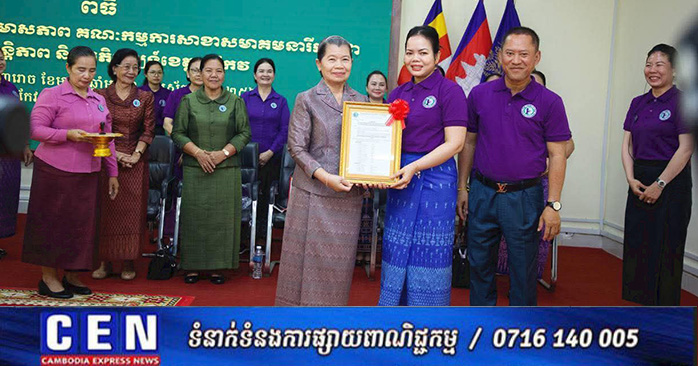 តាកែវ ៖ សម្តេចកិត្តិសង្គហបណ្ឌិត ម៉ែន សំអន ឧត្តមប្រឹក្សាផ្ទាល់ព្រះមហាក្សត្រ និងជាប្រធានសមាគមនារីកម្ពុជាដើម្បីសន្តិភាពនិងអភិវឌ្ឍន៍ អញ្ជើញជាអធិបតីក្នុងពិធីប្រកាសទទួលស្គាល់សមាសភាពគណៈកម្មការសាខាសមាគមនារីកម្ពុជា ដើម្បីសន្តិភាពនិងអភិវឌ្ឍន៍ខេត្តតាកែវ នាព្រឹកថ្ងៃអាទិត្យ ១៣រោច ខែមាឃ ឆ្នាំម្សាញ់ សប្តស័ក ព.ស.២៥៦៩ ត្រូវនឹងថ្ងៃទី១៥ ខែកុម្ភៈ ឆ្នាំ២០២៦។