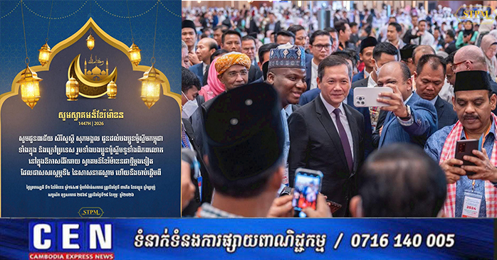 ភ្នំពេញ ៖ សម្តេចមហាបវរធិបតី ហ៊ុន ម៉ាណែត នាយករដ្ឋមន្រ្តីនៃព្រះរាជាណាចក្រកម្ពុជា បានមានប្រសាសន៍ថា តាងនាមរាជរដ្ឋាភិបាល នៃព្រះរាជាណាចក្រកម្ពុជា នីតិកាលទី៧ នៃរដ្ឋសភា ដែលដឹកនាំដោយគណបក្សប្រជាជនកម្ពុជា ខ្ញុំនិងភរិយា សូមអបអរសាទរ និងសូមជូននូវពរជ័យ សិរីសួស្ដី សុភមង្គល ជូនដល់បងប្អូនម៉ូស្លីមកម្ពុជា ទាំងក្នុង និង ក្រៅប្រទេស រួមទាំងបងប្អូនម៉ូស្លីមនៅទូទាំងពិភពលោក ដែលនឹងចូលបួសខែរ៉ម៉ាឌន ខែពិសិដ្ឋក្នុងសាសនាឥស្លាម ហើយជាសសរស្តម្ភទី៤ ក្នុងសាសនាឥស្លាម ដោយនៅប្រទេសកម្ពុជាយើងនឹងចាប់ផ្ដើមនៅថ្ងៃព្រហស្បតិ៍ ទី១ ខែរ៉ម៉ាឌន ឆ្នាំ ១៤៤៧ មូហាំម៉ាត់សករាជ ត្រូវនឹងថ្ងៃ៣កើត ខែផល្គុន ឆ្នាំម្សាញ់ សប្តស័ក ព.ស.២៥៦៩ ត្រូវនឹងថ្ងៃទី១៩ ខែកុម្ភៈ ឆ្នាំ២០២៦។