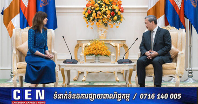 ភ្នំពេញ ៖ សម្តេចមហាបវរធិបតី ហ៊ុន ម៉ាណែត នាយករដ្ឋមន្រ្តីនៃព្រះរាជាណាចក្រកម្ពុជា បានអញ្ជើញជួបជាមួយ លោកជំទាវ Vladanka Andreeva អ្នកសម្របសម្រួល អង្គការសហប្រជាជាតិប្រចាំនៅព្រះរាជាណាចក្រកម្ពុជាក្នុងជំនួបសម្តែងការគួរសម និងពិភាក្សាការងារ នៅវិមានសន្តិភាព ព្រឹកថ្ងៃចន្ទ ទី២ មីនា ២០២៦។