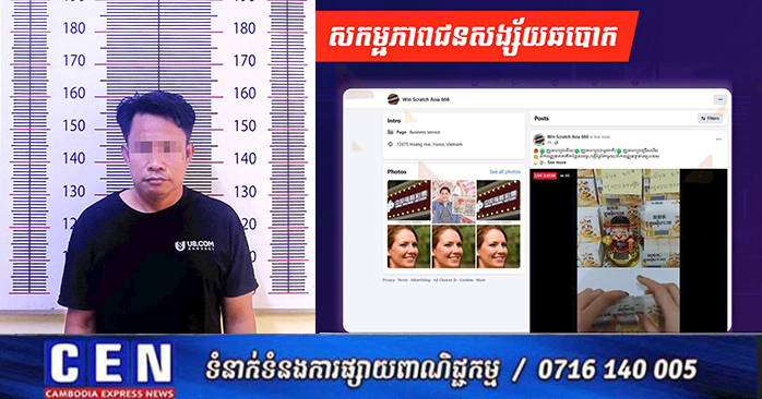 ភ្នំពេញ ៖ យោងតាមបញ្ជាដឹកនាំរបស់ ឯកឧត្ដម នាយឧត្ដមសេនីយ៍ ស ថេត អគ្គស្នងការនគរបាលជាតិ និងតាមការចង្អុលណែនាំពី ឯកឧត្ដម ឧត្ដមសេនីយ៍ឯក អគ្គស្នងការរងនគរបាលជាតិ កាលពីថ្ងៃទី២ ខែមីនា ឆ្នាំ២០២៦ នាយកដ្ឋានប្រឆាំងបទល្មើសបច្ចេកវិទ្យា សហការជាមួយស្នងការដ្ឋាននគរបាលខេត្តស្វាយរៀង បានបើកការស្រាវជ្រាវ និងបង្ក្រាបលើករណីបង្ហោះផ្សព្វផ្សាយ លក់ឆ្នោតកោសអនឡាញខុសច្បាប់ នៅលើបណ្តាញសង្គមហ្វេសប៊ុក ដែលមានទំព័រហ្វេសប៊ុកឈ្មោះ Win Scratch Asia 666 មានតំណរភ្ជាប់ https://www.facebook.com/profile.php?id=61550331525031 ដែលផ្ទុយទៅនឹងសារាចរណែនាំរបស់ក្រសួងមហាផ្ទៃ និងបានឃាត់ខ្លួនជនសង្ស័យ ០១នាក់ ឈ្មោះ ក.ទ ភេទប្រុស ជនជាតិខ្មែរ។ តាមរយៈការស្រាវជ្រាវ និងការសាកសួរ សមត្ថកិច្ចកំណត់បានថា ជនសង្ស័យរូបនេះ បានផ្តល់គណនីធនាគារ (ABA) និងលេខទូរស័ព្ទរបស់ខ្លួនជួលឱ្យទៅក្រុមជនល្មើស ដើម្បីយកទៅប្រព្រឹត្តសកម្មភាពខុសច្បាប់។
